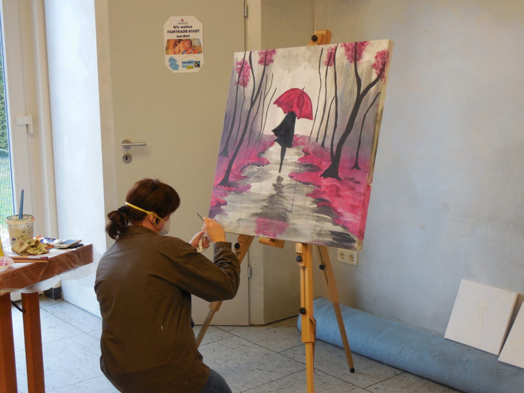 Kosten pro Workshop: 65,– inkl. Material, Farbe, Rahmen 30×30,